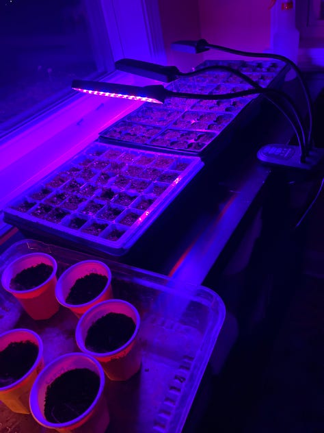 We got a wave of warm weather last week and my husband and I, a little impulsively, started our seeds. We may regret this decision in April/May. We shall see...